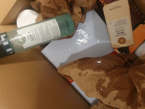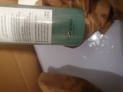 I dag mottok jeg pakken, flasken med hårolje er tom, oljen sølt på andre produkter i pakken.