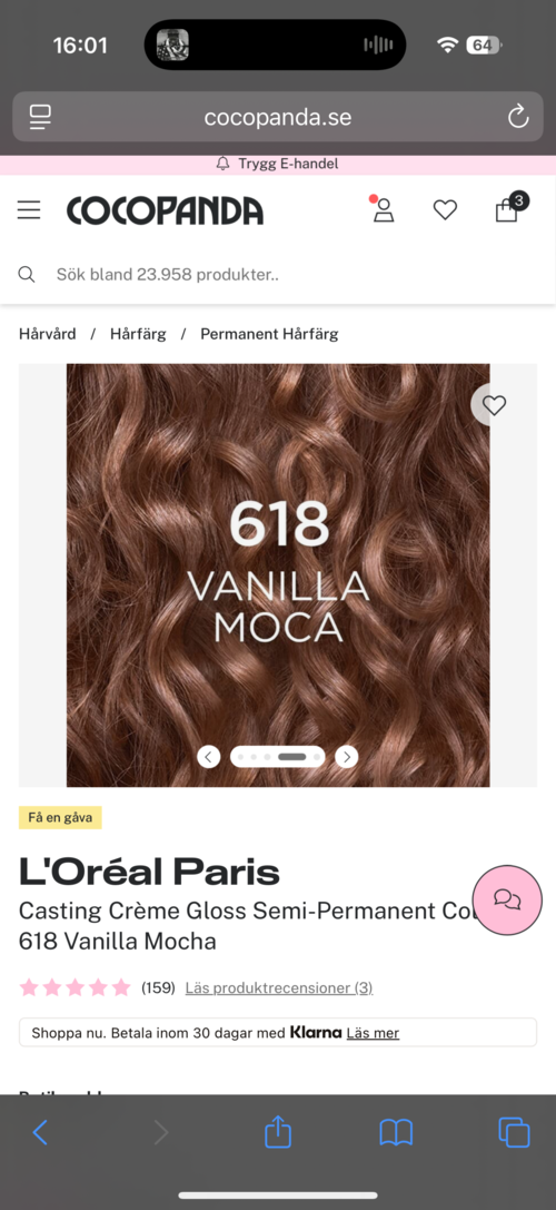 Jeg har kjøpt fargen vanilla moca, og jeg lurer på om resultatet blir mørkere. Jeg så nemlig en video før med en jente som brukte samme farge, og håret hennes ble nesten svart…1 produkt i posten Hjelp meg, vær så snill!!6916 visninger- Brukerens rolle: Lyko Creator.Kommentaren lades 2 månederJeg har blondt hår og brukte 618 for noen år siden. I begynnelsen ble det virkelig mørkt, men etter noen måneder ble det falmet. Fargen i seg selv var virkelig vakker! Det avhenger mye av ditt utgangspunkt.