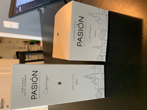- Innlegget ble opprettet 5 årFikk en bodyskrubb og selvbruningskrem fra Pasión av en venninne. Disse lukter deilig søt kaffe. Bodyskrubben er ganske flytende men veldig god å bruke. Huden blir silkemyk etterpå. Selvbruningskremen er et sted midt i mellom «krem og flytende» som gjør den lett å smøre ut på kroppen uten skjolder. Eneste minuset er at den ikke gav meg like mye farge som andre selvbruningskremer. På bildet som er lastet opp ser man resultatet etter å ha smurt meg inn 2 ganger. (Øverst før, og under etter) Denne er fin å bruke på vinteren for å bare få litt mer glød og ikke se ut som du nettopp har kommer hjem fra 2 uker i syden.90 visninger